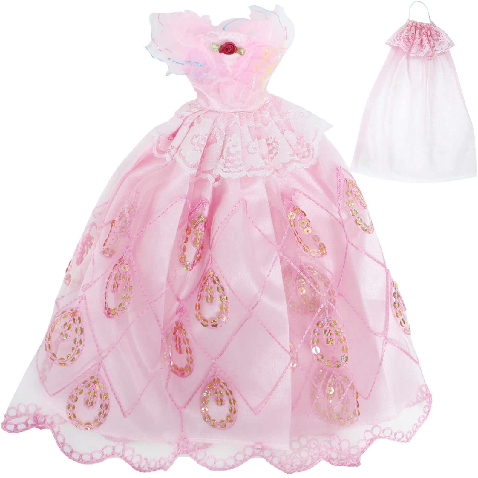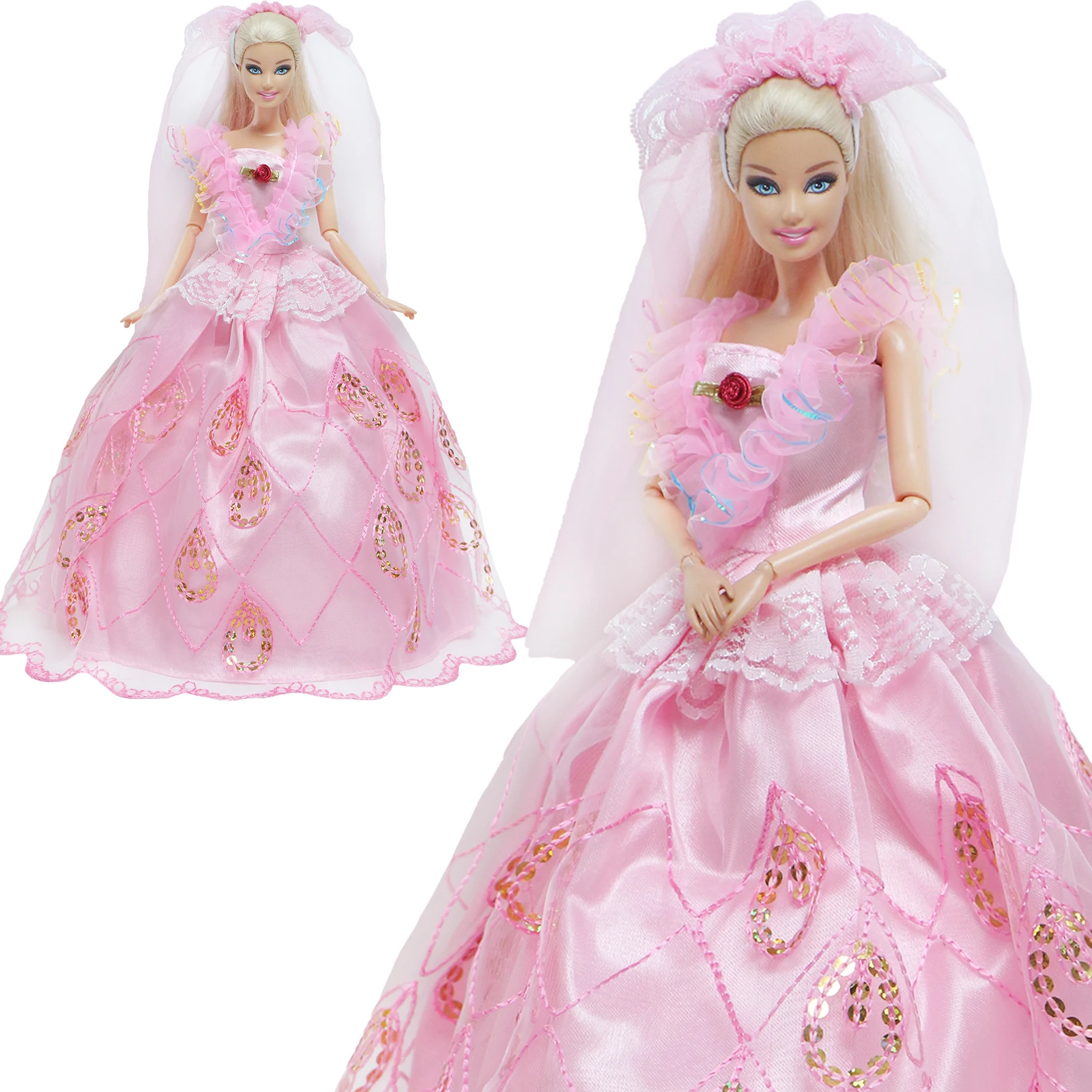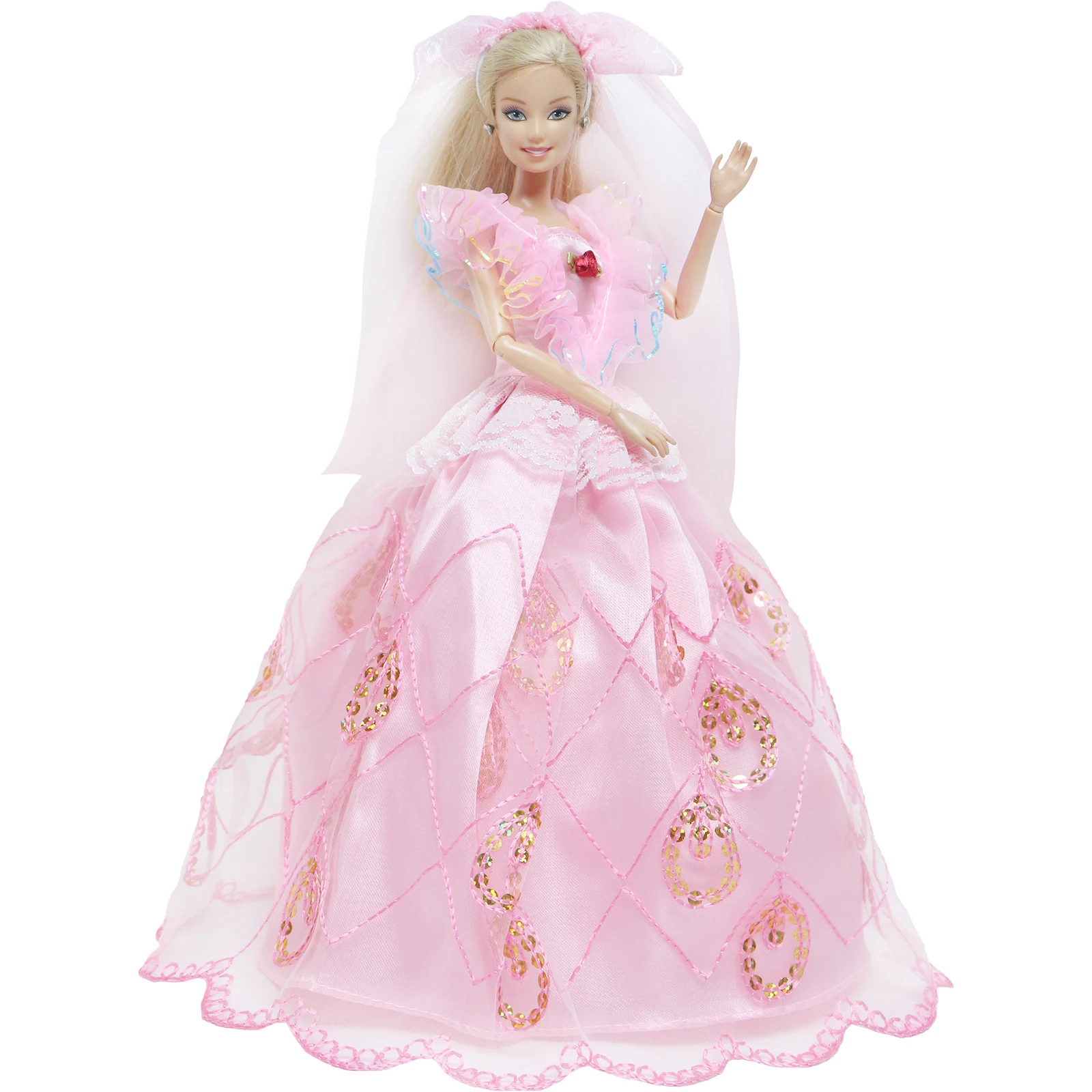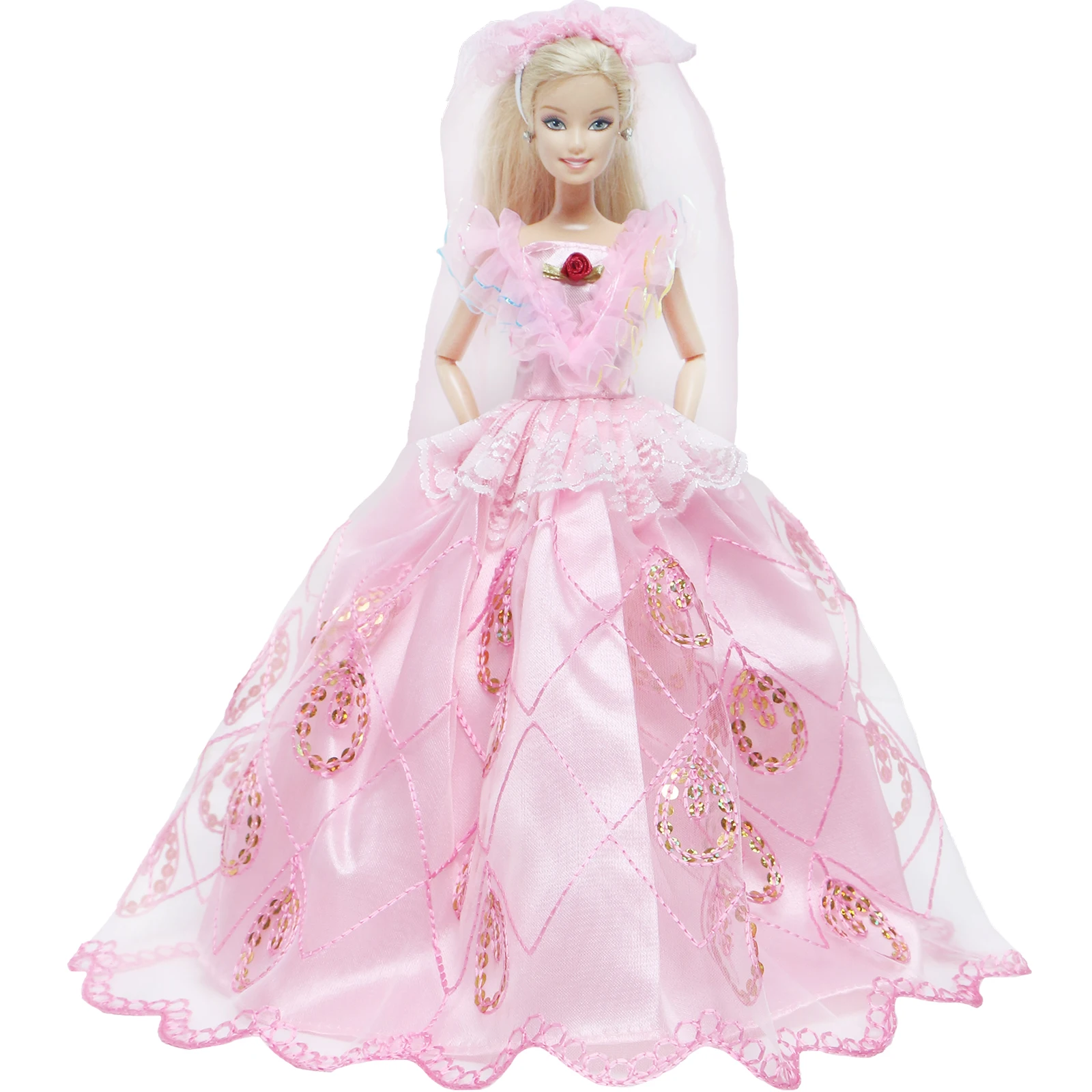1x элегантное розовое бальное платье принцессы в форме сердца вечерние няя одежда без рукавов, вуаль, длинное свадебное платье для куклы Барби, аксессуары