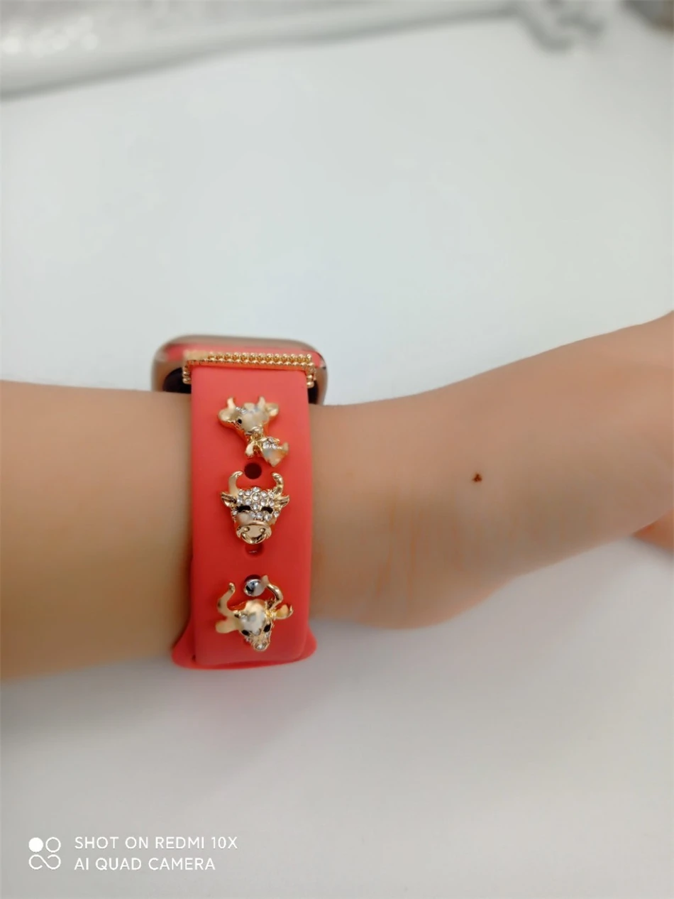Декоративные подвески для браслета Apple Watch, силиконовый браслет, металлические декоративные гвозди, резиновый браслет для iwatch, спортивный ремешок, аксессуары