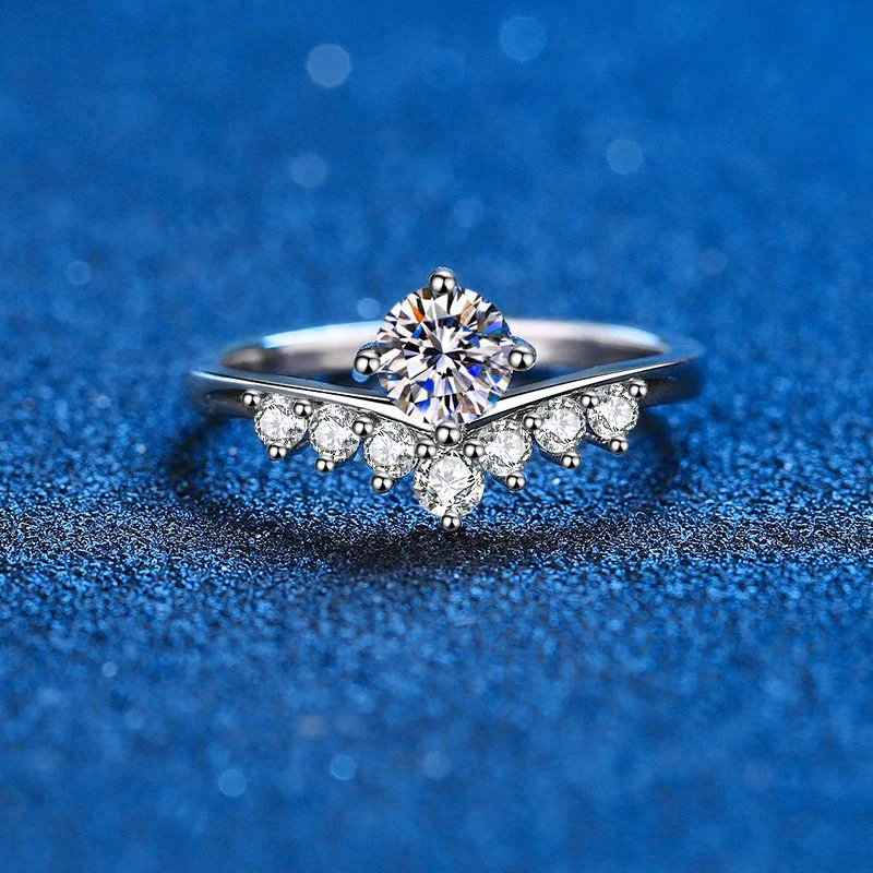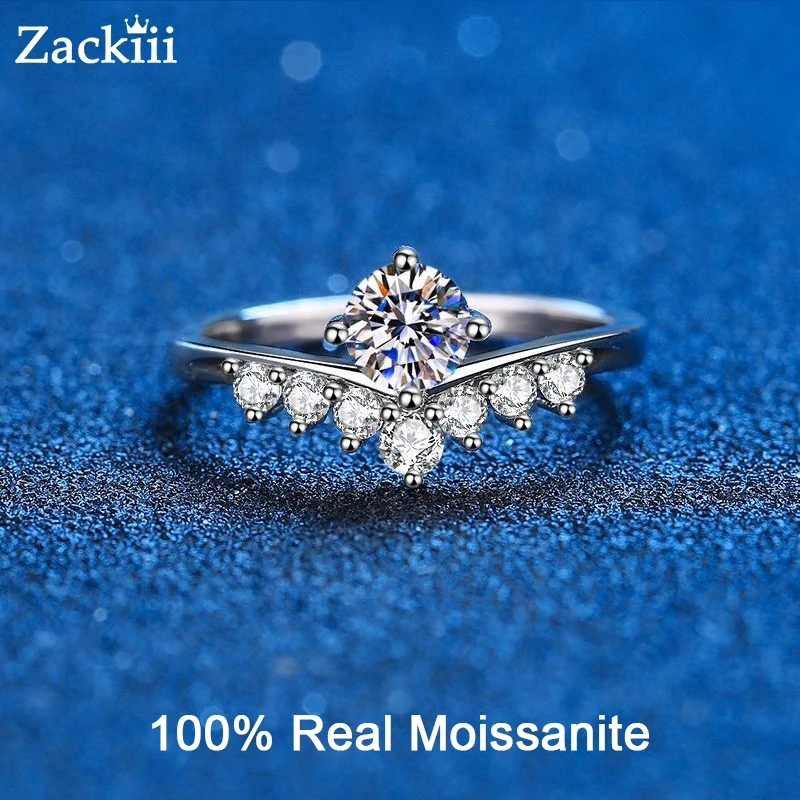 Настоящий муассанит обручальное кольцо с платиновым покрытием из стерлингового серебра с Принцесса кольца в форме короны, хороший подарок для девушек и женщин