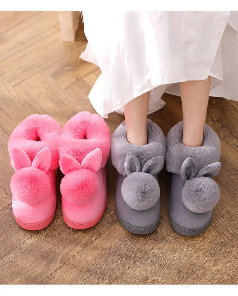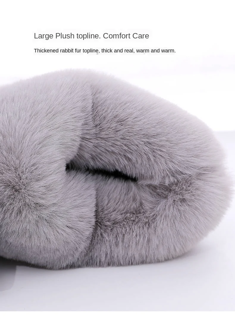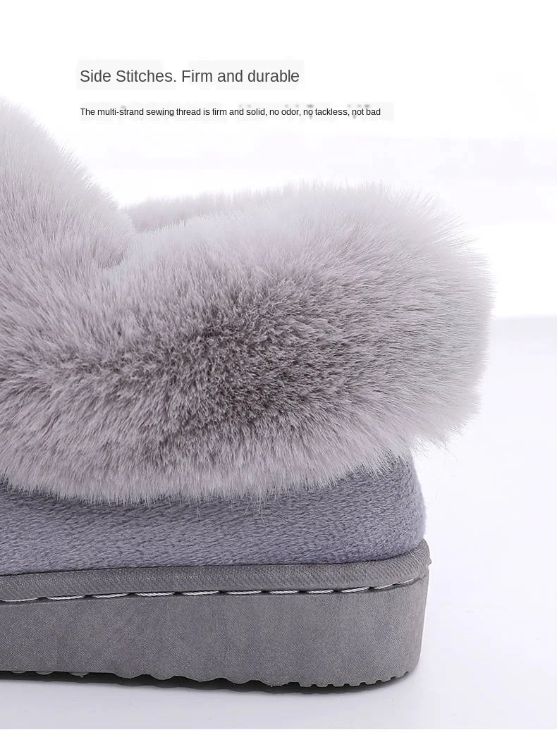 Тапочки женские хб, на толстой подошве, с мехом кролика
