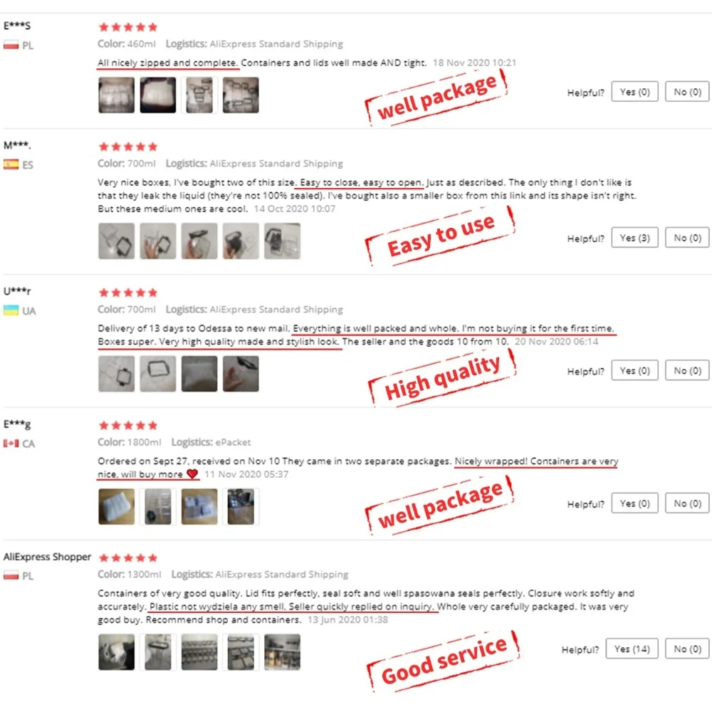 Прозрачные кухонные контейнеры 460-1800 мл, герметичный резервуар д...