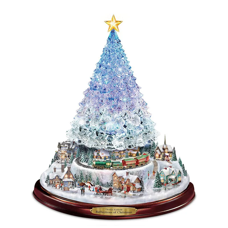Рождественская Хрустальная елка, Санта-Клаус, снеговик, вращающаяся...