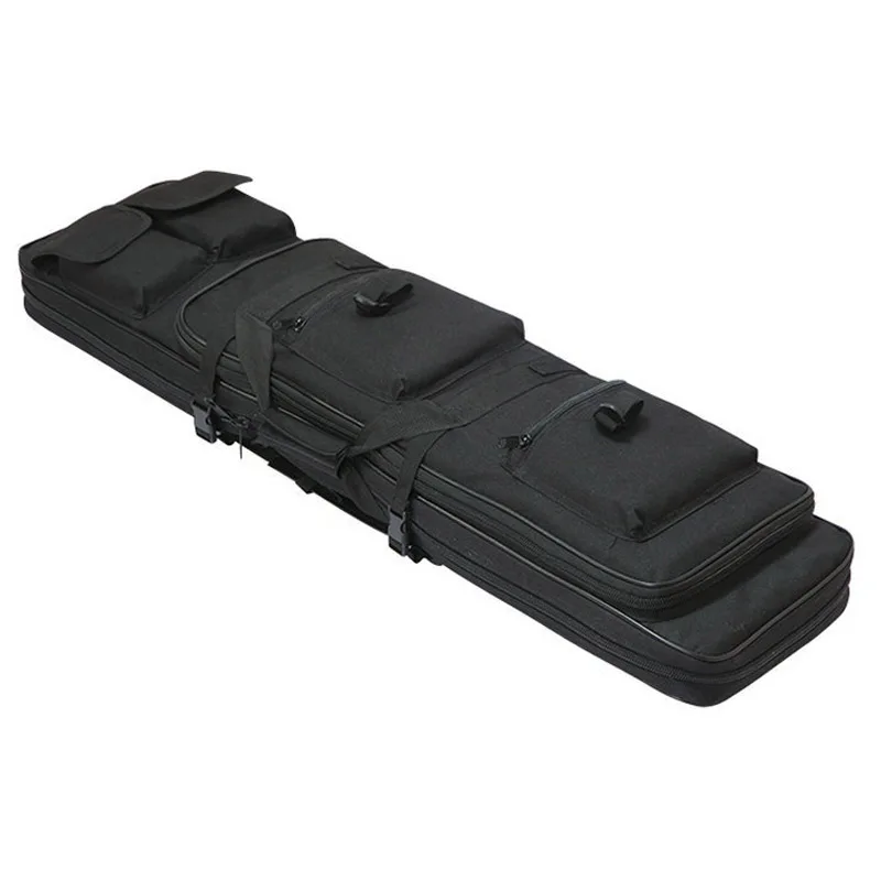 · Made by high density Nylon material. · Contains extended cover able to store rifle with 83.96.118cm maximum length. · Smaller gun bag able to hold 28cm width rifle. · 2 zipper and 2 vel cro flip small pouches for carrying magazine or small gears. · 1 large zipper compartment on the back side. · Photo/name card holder on the back side. · With 2 hand carry strap. · Adjustable padded shoulder strap and chest strap. · With thick cushion padded for protectio · Perfect for outdoor war game activities