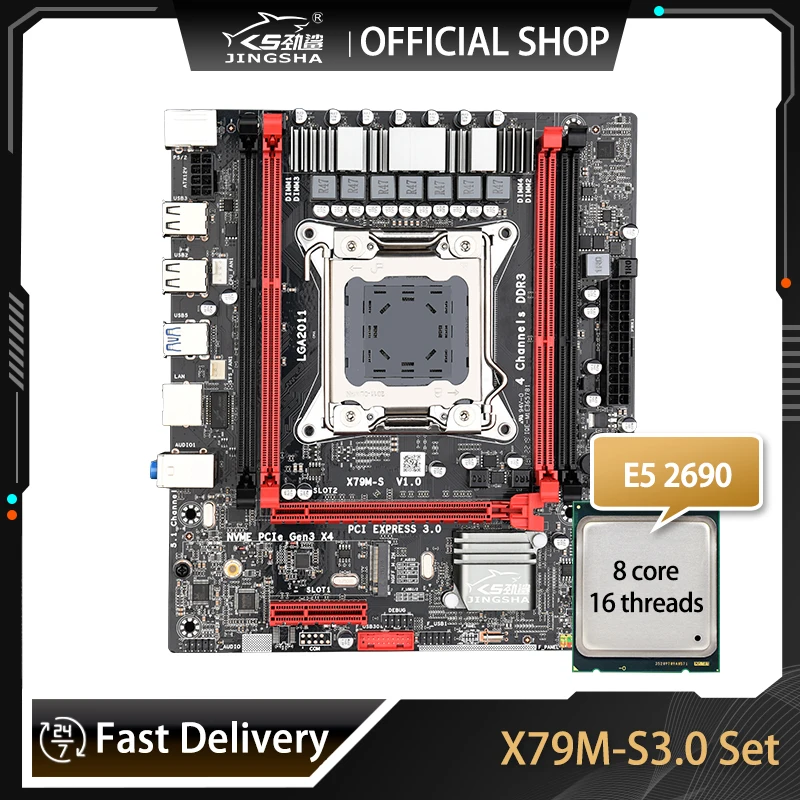 Системная плата JINGSHA X79M-S 3,0 с процессором Xeon E5 2690, восьмиядерным шестнадцать потоков до 64 ГБ DDR3 память ECC REG M-ATX