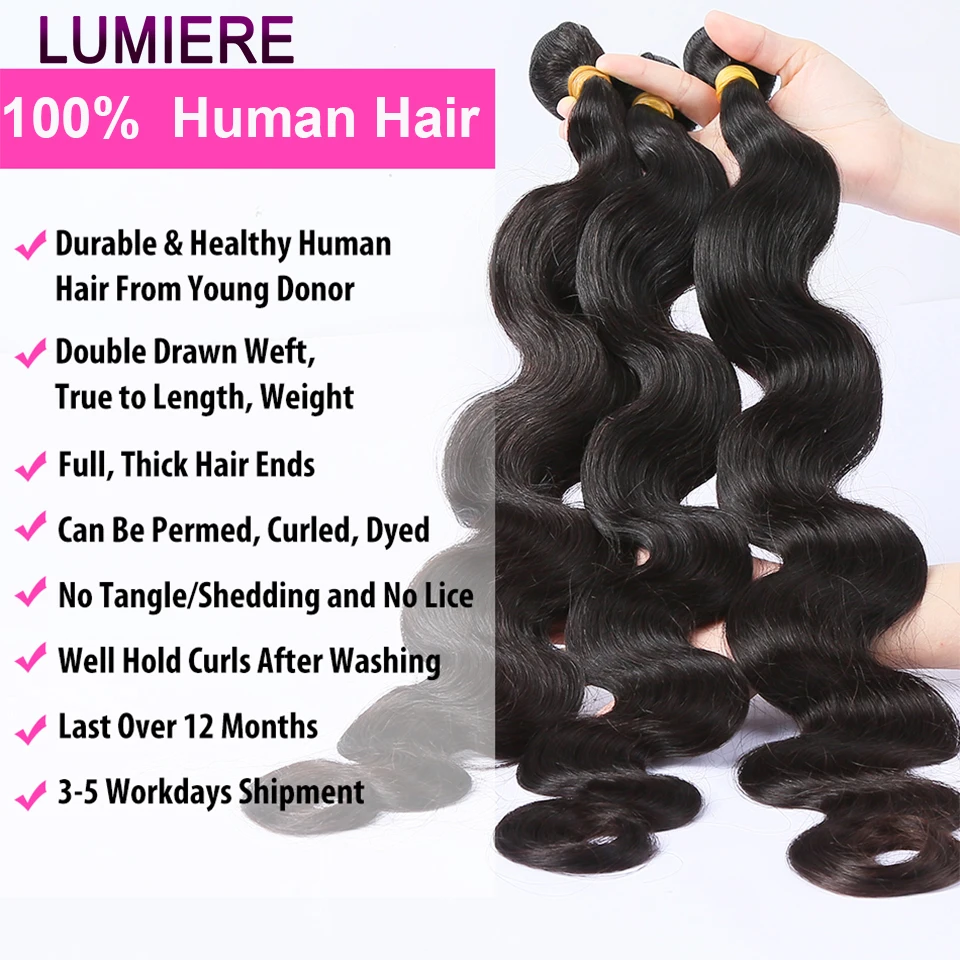 38 40 инч объёмная волна пряди с закрытием бразильские волосы категории Virgin 3/4 пряди с 5X5 6X6 HD Прозрачная Кружевная застежка Frontalh 4x4 застежка