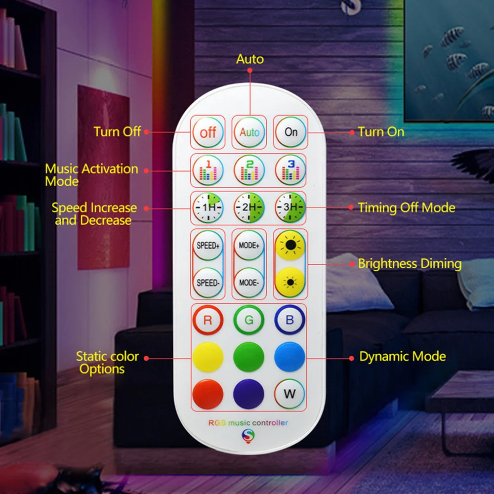Ленточная Гибкая Кривая вокруг кривых, 16 миллионов статических цветов можно выбрать через приложение. Яркость и мигающая скорость можно регулировать от O до 100 уровней через мобильное приложение.