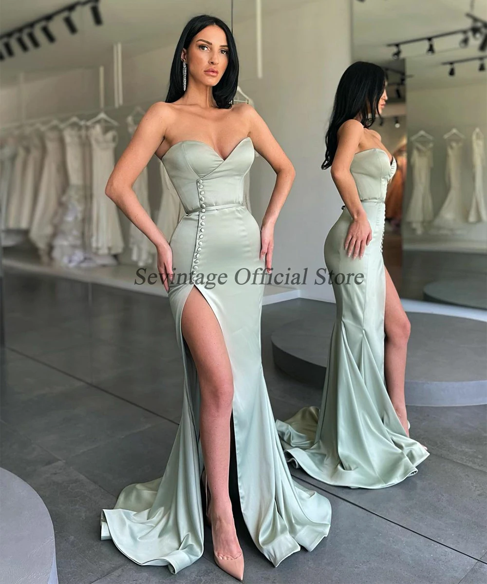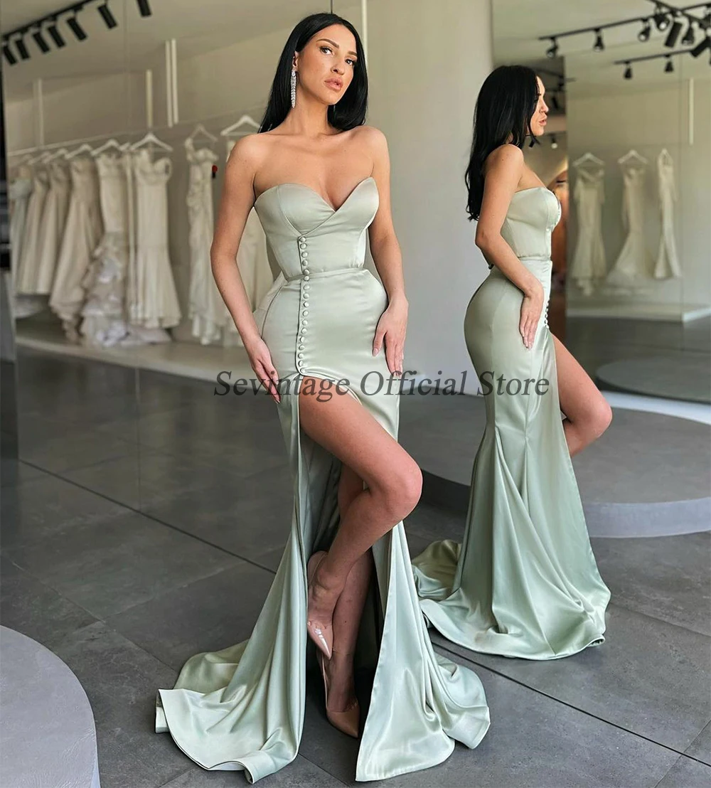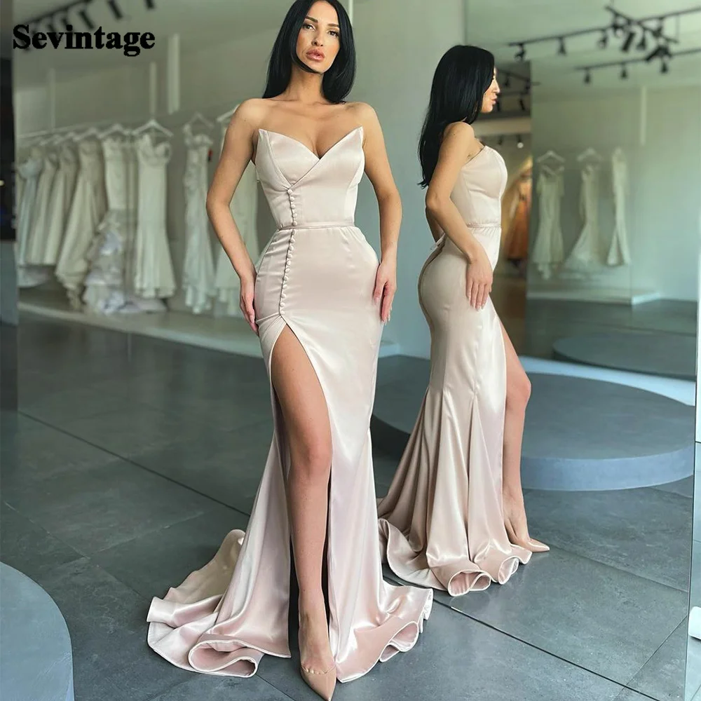 Вечернее платье-Русалка Sevintage, с V-образным вырезом, с разрезом по бокам, модель выходные платья без рукавов