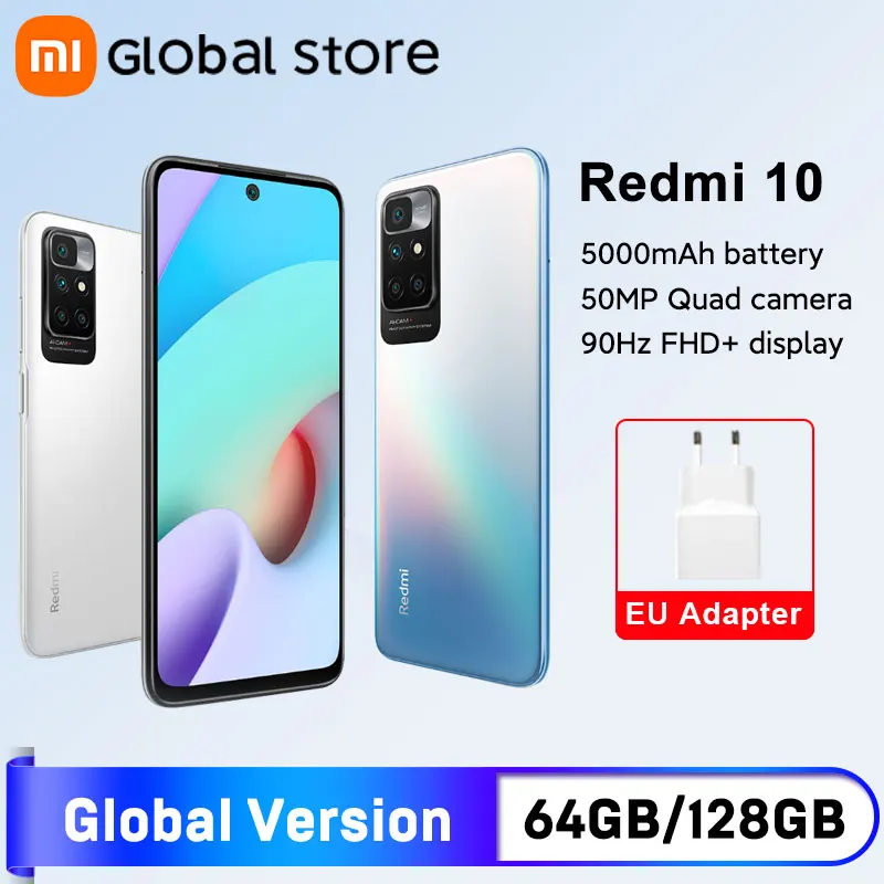 Xiaomi Redmi 10 64 Гб128 ГБ глобальная версия мобильного телефона MediaTek Helio G88 Восьмиядерный 50MP камера 90 Гц дисплей