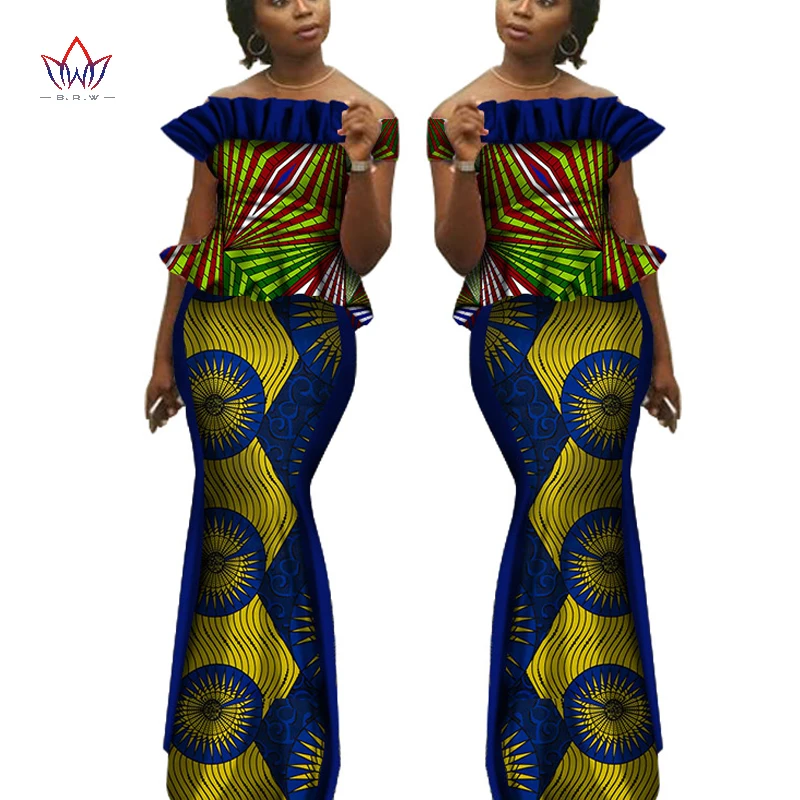 Африканские платья для женщин, комплект одежды, юбка, топ, наборы для женщин, высокая талия, юбка, длинная юбка в африканском стиле размера плюс, WY1422