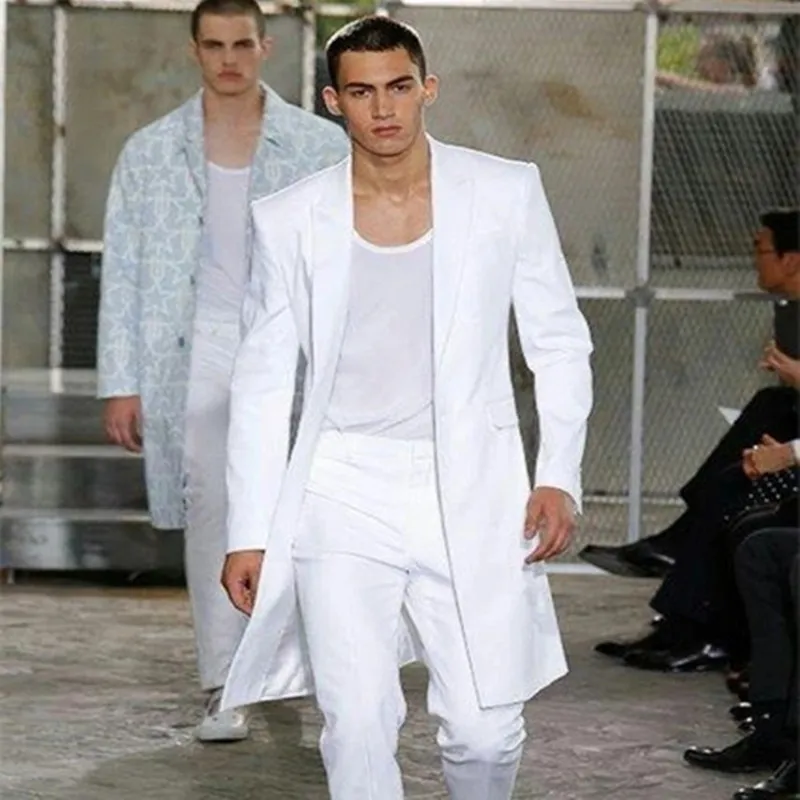 Костюм мужской длинный из двух предметов, пиджак с заостренным лацканом, смокинг для жениха, Свадебный костюм, белый цвет, на лето