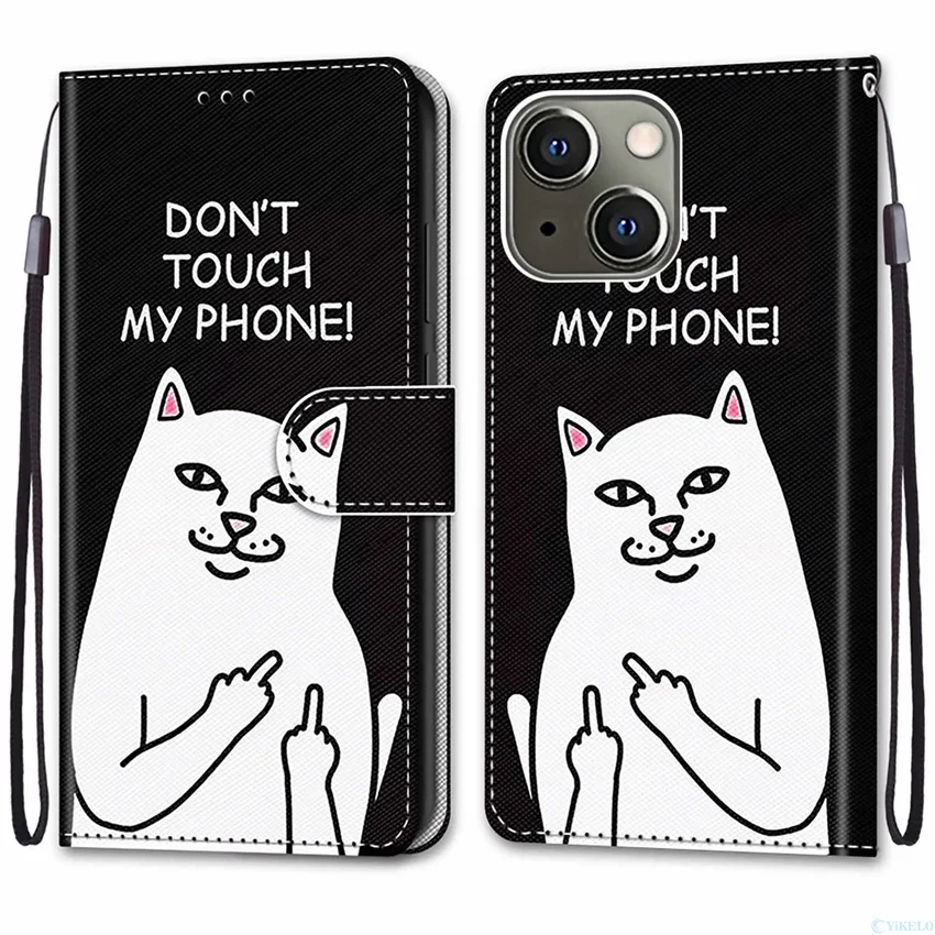 Кожаный флип-чехол для телефона iPhone 13 Pro Max mini 12, кошелек, держатель для карт, подставка, чехол-книжка с котом и цветком для iPhone13 13 Pro 13ProMax