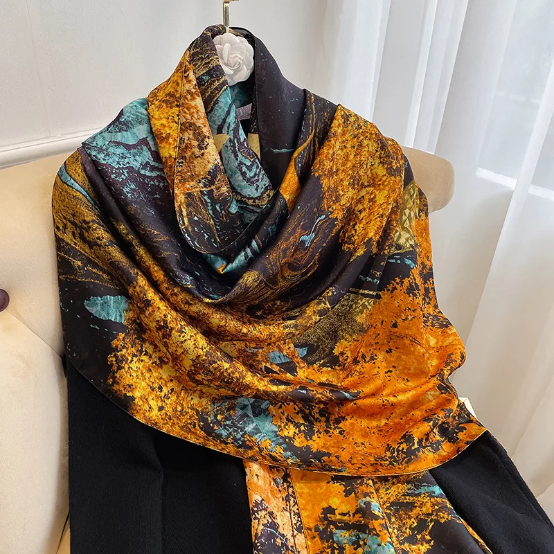 Шарф женский, Шелковый, для пляжа, для осени и зимы