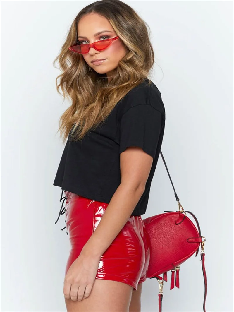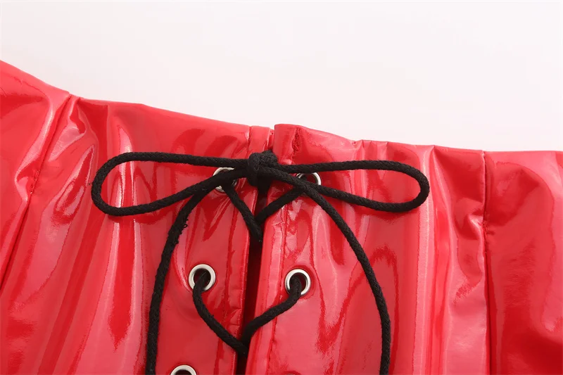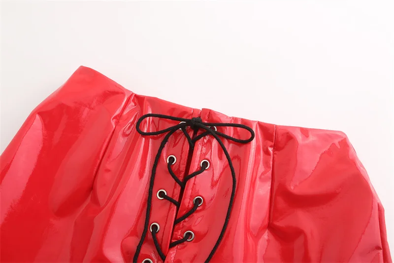 Шорты женские из искусственной кожи, на шнуровке, с высокой талией, красные, черные