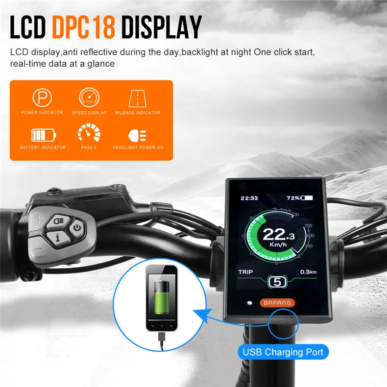 27. Дюймовый дорожный Электрический велосипед bafang со средним мотором 1000 Вт, литиевый аккумулятор 48 В, Электрический горный велосипед C18 LCD 60 кмч, электровелосипед