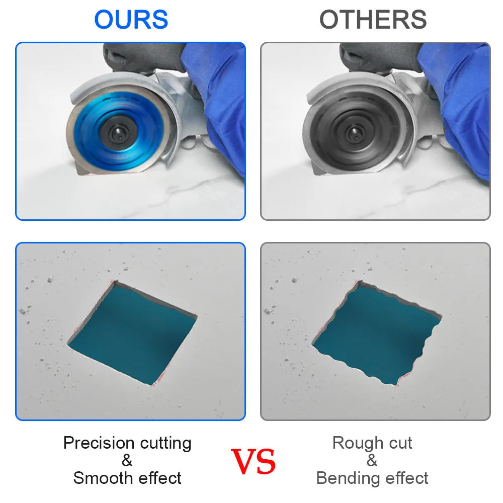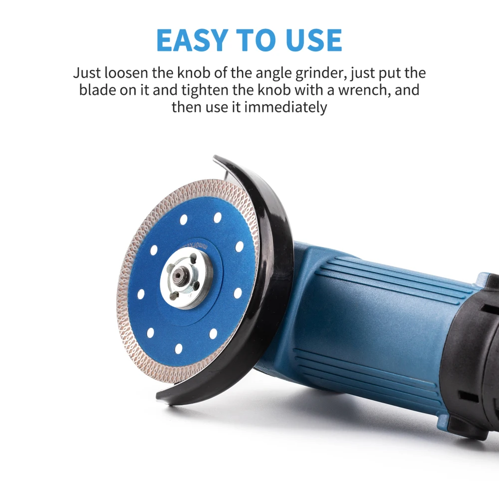 Высококачественный материал Лезвие алмазной пилыИзготовлены с высококачественными промышленными алмазами, которые выдерживают тысячи раз резки без деформации и повреждения, очень прочные и долговечные. Быстрая и резкая резка Он может обеспечить быструю, точную, гладкую и чиповую обработку для вас. Восток для использования Просто Открутите винтовую ручку углового шлифовального станка, просто поместите лезвие на него и затяните винтовую ручку гаечным ключом и используйте его сразу. Не требуется более сложного инструмента. Области применения Эта алмазная пила совместима с сухой или влажной резкой и поддерживает большинство мраморных машин, станков для резки, угловых шлифовальных машин и т. д. Его можно широко использовать для резки, шлифования или полировки гранита, мрамора, бетона, асфальта, огнеупорного, фарфора и стекла. Характеристики: Тип: алмазная пила Материал: бриллиант Цвет: синий Максимальная линейная скорость: 4000 rmp Твердость: 100 Толщина 1,0 мм/0,04” Внутренний диаметр: 22,23 мм/0,88 дюйма Внешний диаметр: 115 мм/4,53 дюйма Вес нетто: 90 г/3,17 унций Упаковка: 1 * алмазная пила