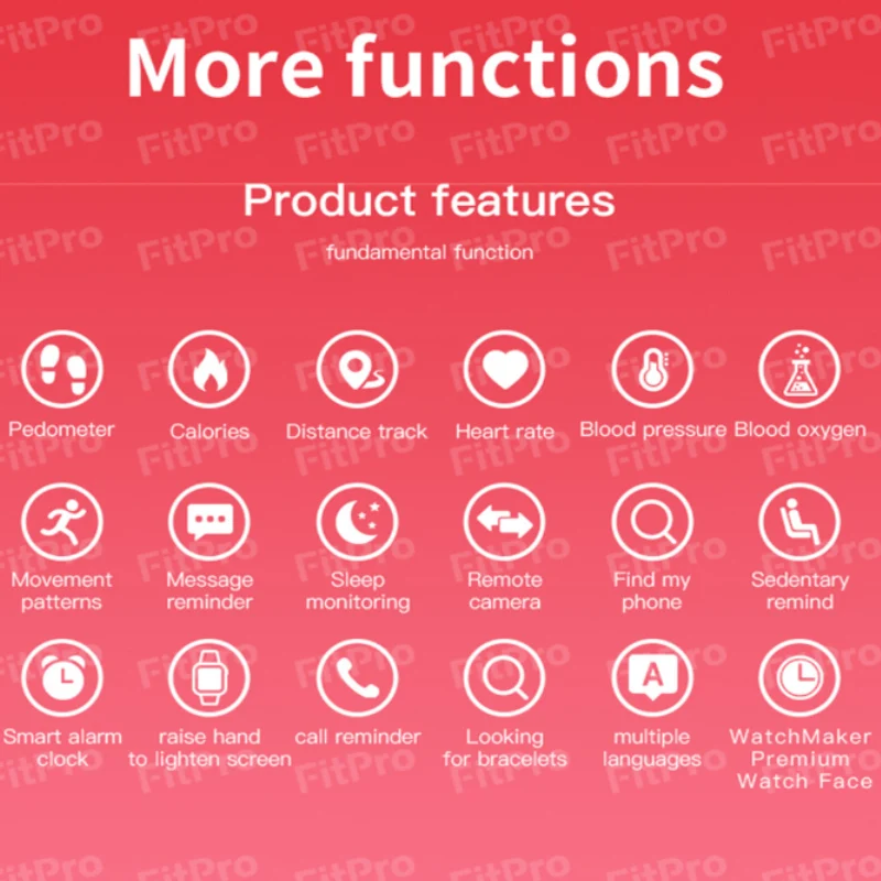 * Дополнительные функции: Поиск браслета, напоминание о тревоге, удаленная камера, поднимите руку, чтобы осветить, Управление музыкой, Погода