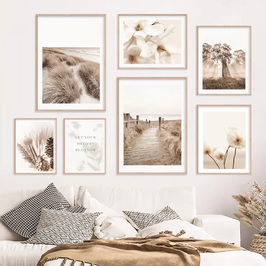 Цветок магнолии Лилия Дейзи Рид пляж сосновый конус птица скандинавский стиль настенная живопись холст постеры и принты Декор для гостиной