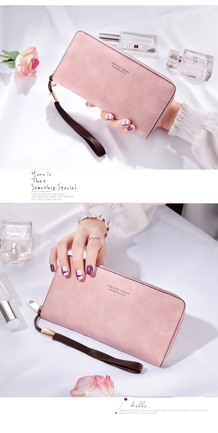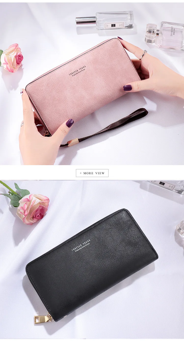 Вместительный кошелек для женщин из искусственной кожи, модный прочный женский бумажник, винтажный портативный держатель для карт и телефона на молнии