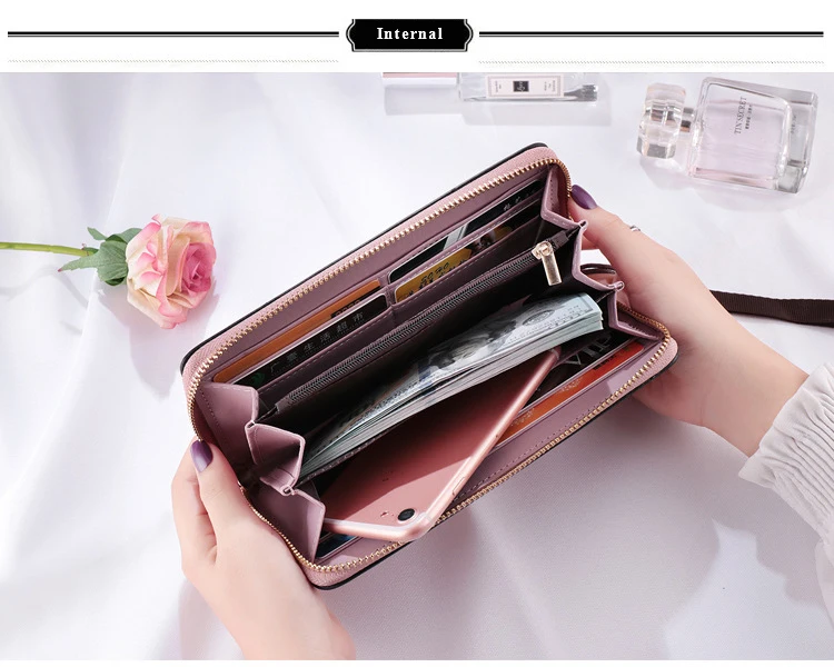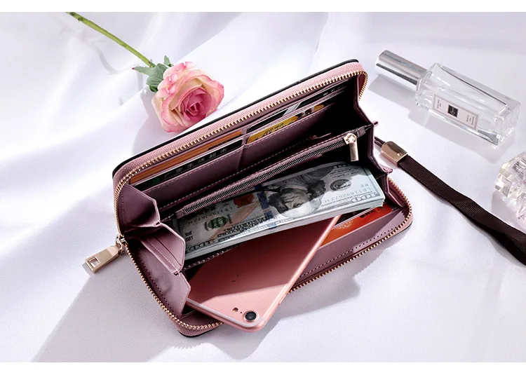 Длинный женский кошелек на молнии, клатч для карт, дамская сумочка ...