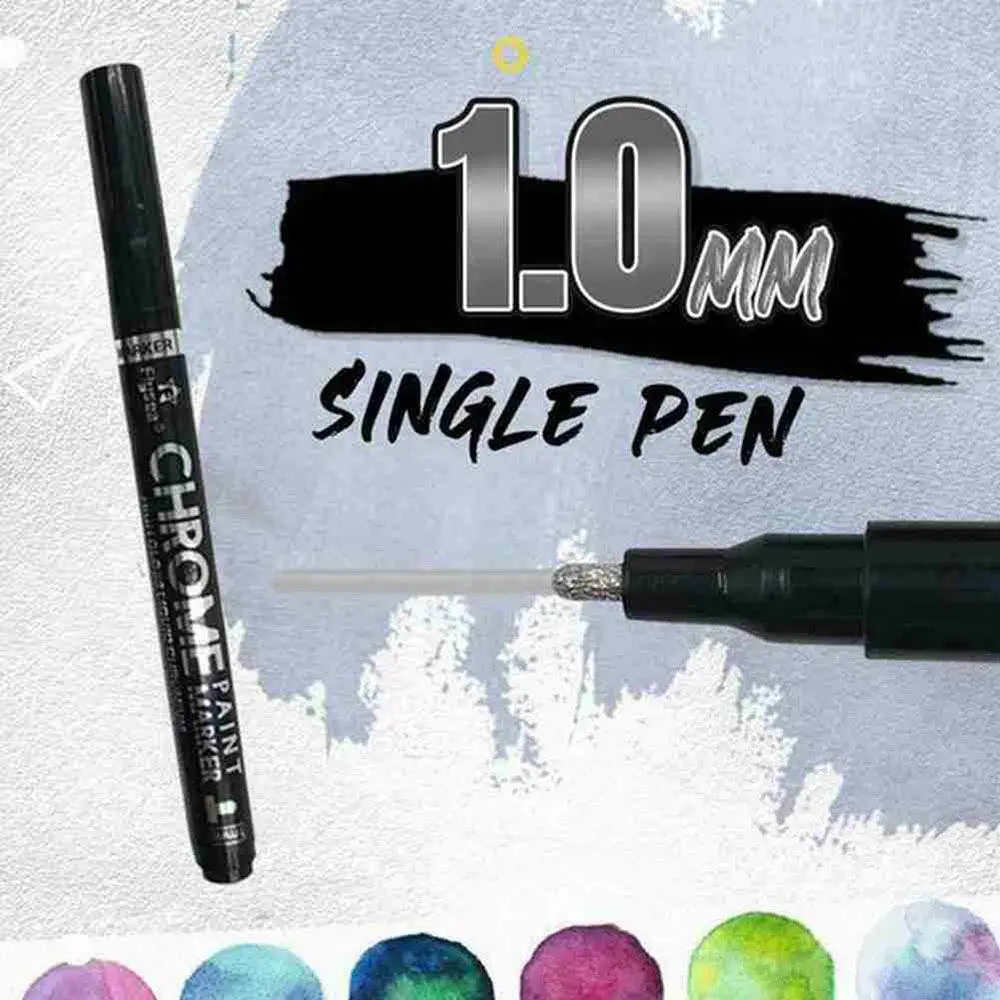 Наконечник ручки: 0,7 мм, 1,0 мм, 3,0 ммРазмеры: 14,2 см x 1,6 смИспользуйте этот продукт, чтобы придать вашей работе потрясающий зеркальный эффект!Этот потрясающий хромированный маркер использует Светоотражающие чернила, чтобы добавить блестящее серебряное прикосновение к вашим проектам.Он наполнен высокопигментированными специальными хромированными чернилами, которые могут демонстрировать непревзойденное зеркальное воздействие практически на все гладкие поверхности (такие как пластик, стекло, дерево и резина).Он на спиртовой основе, постоянный и устойчивый к УФ-лучам, царапинам и истиранию.Зеркальное хромированное покрытие. Этот высокопигментированный маркер на спиртовой основе может производить блестящий, настоящий зеркальный эффект практически на всех гладких поверхностях (таких как пластик и стекло).Плавный поток. Чернила используют инновационный дизайн клапана для плавного потока без остановки, протекания или затухания.Подходит практически для всех гладких поверхностей. Эффективно на различных поверхностях, таких как пластик, стекло, металл, глина, пена и бумага.Долговечные чернила. Его высокопигментная формула устойчива к царапинам, УФ-стойкая и стойкая к атмосферным воздействиям.Различные размеры. 3 вида размеров наконечника: 7 мм, 1,0 мм, 3,0 мм, чтобы удовлетворить все ваши творческие потребности.Широкий спектр применений. Эти хромированные чернила также подходят в качестве распылителя. Тонкие пигменты могут быть распылены распылителем.Товары входят в комплект:1 x хромированная ручка-маркер с жидким зеркалом