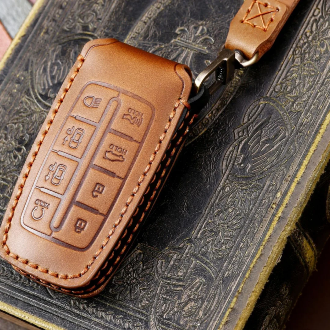 Кожаный чехол для автомобильного ключа ручной работы, чехол для Hyundai Genesis G80 GV70 GV80 2019 2020, брелок для дистанционного ключа, аксессуары для автомобиля