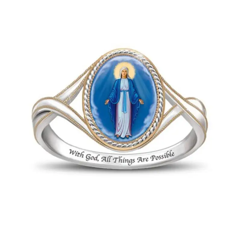 Кольцо женское, с изображением девы Марии, для мамы и ребенка