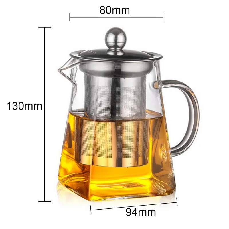 Характеристики: <материал> Изготовлен из высококачественного боросиликатного стекла и нержавеющей стали, которая не токсична, не имеет запаха и термостойкая. <Заварка из нержавеющей стали> Съемный сетчатый фильтр из нержавеющей стали предназначен для рыхлых чаев или цветущих чаев. <Хорошее качество> корпус из боросиликатного стекла был оптимизирован, чтобы быть более толстым, нелегко сломать и прочнее для ежедневного использования. <Легко чистить> Безопасная верхняя стойка для посудомоечной машины или краску с проточной водой. <Носик> предназначен для легкой заливки и легкого управления, поэтому вы можете получить каждую последнюю каплю без капель. <Ручка> Эргономичная ручка предназначена для крепкого и удобного захвата.