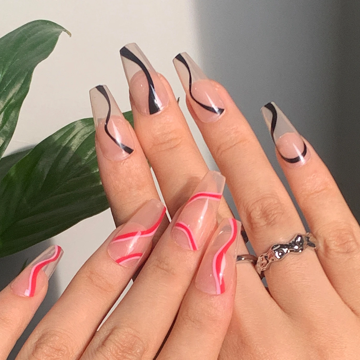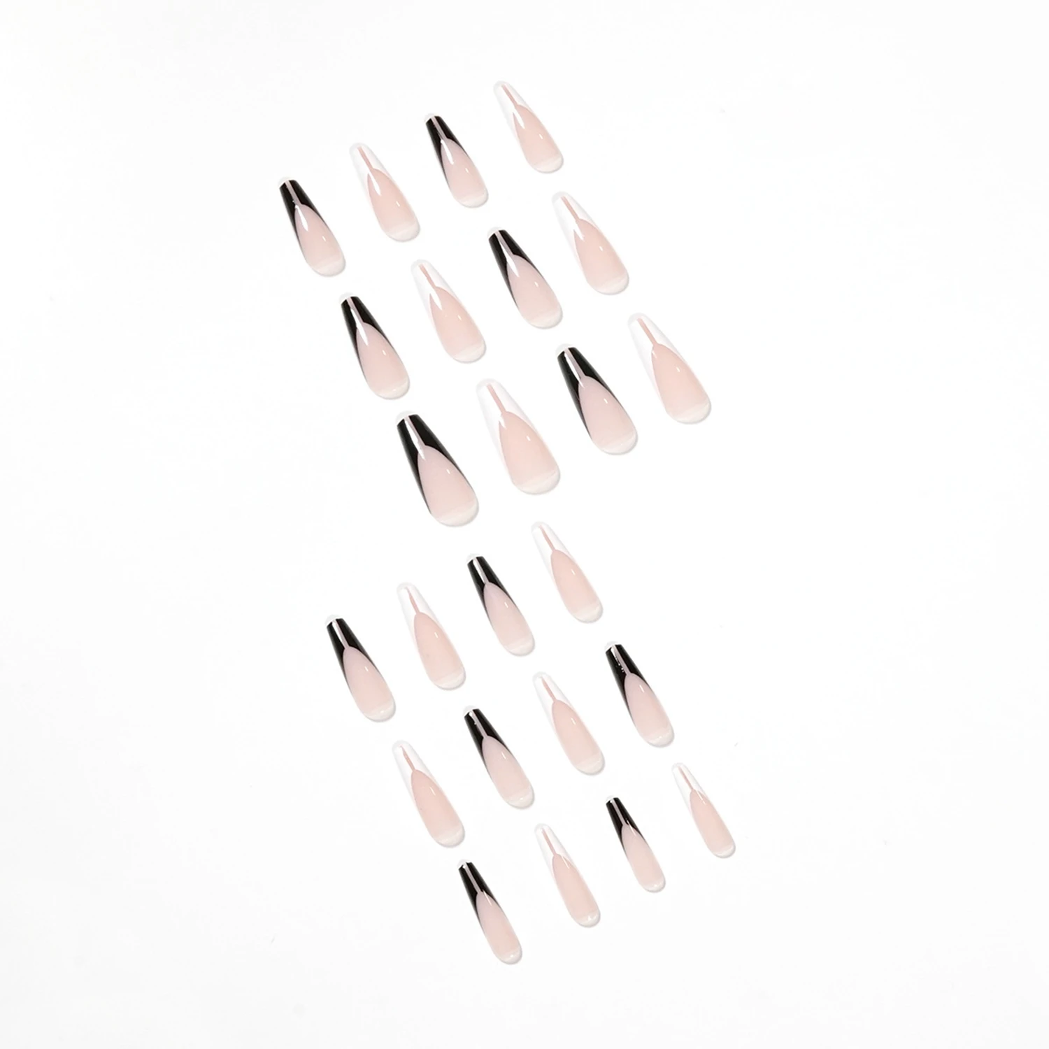 Съемные накладные ногти, длинный гроб, черные, белые французские накладные ногти, накладные ногти, маникюр, сделай сам, украшение ногтей, дизайн, накладные ногти