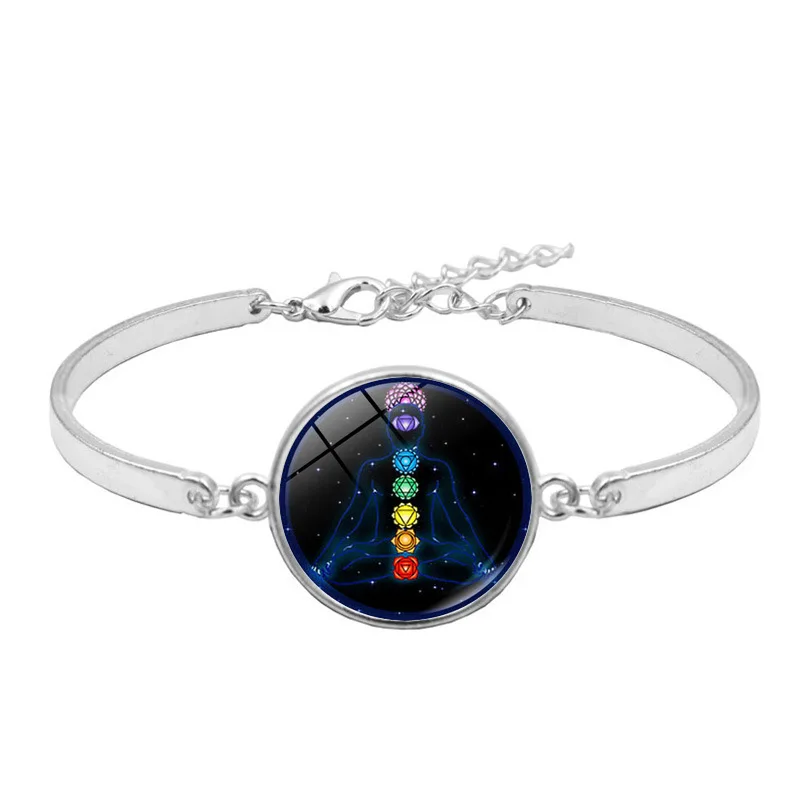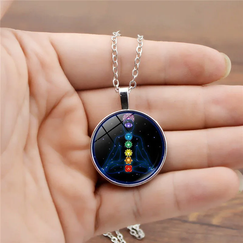 Чакры символ кабошон стеклянная подвеска ожерелье браслет серьги Ювелирный Комплект всего 4 шт. для женщин модная цепочка для свитера