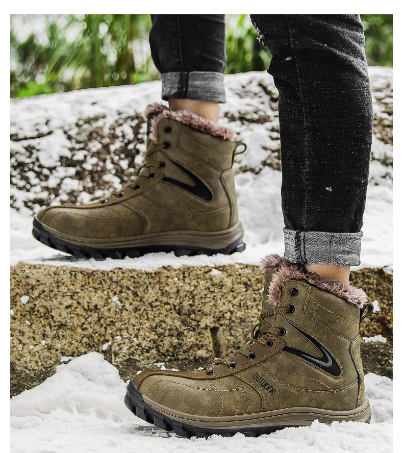 Мужские ботинки YRZL, зимние плюшевые рабочие ботинки до щиколотки, Нескользящие повседневные мягкие удобные высокие ботинки для мужчин