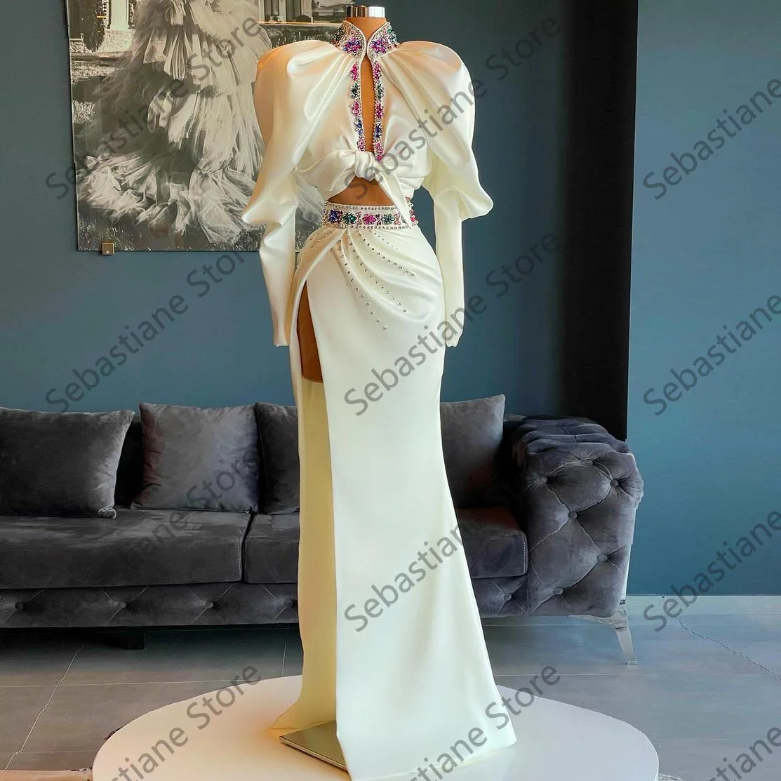 Женское вечернее платье, элегантное платье из двух частей, с длинным рукавом, с высоким разрезом и кристаллами, для выпускного вечера, на заказ, размера плюс