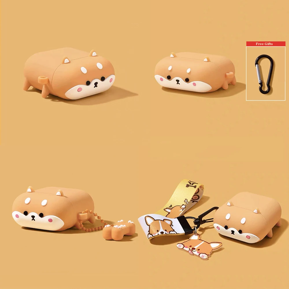 Симпатичный силиконовый чехол Corgi для Apple Airpods1 2 Pro 3 чехол с костью брелок для наушников Bluetooth беспроводной защитный чехол