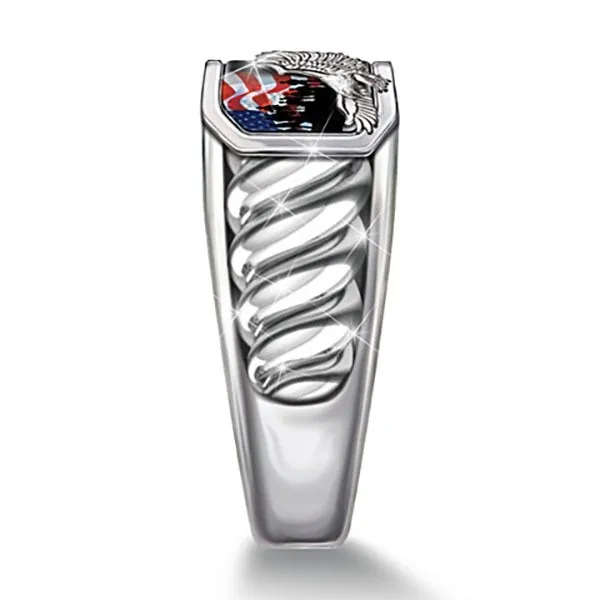 Кольцо ветеранов мужское из нержавеющей стали с американским флагом...