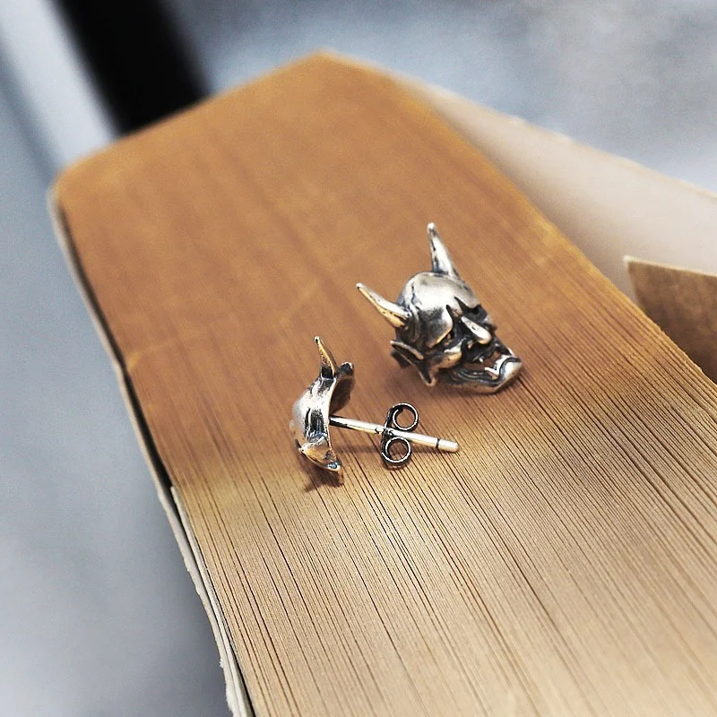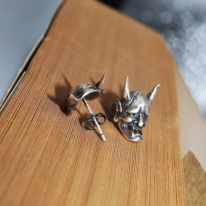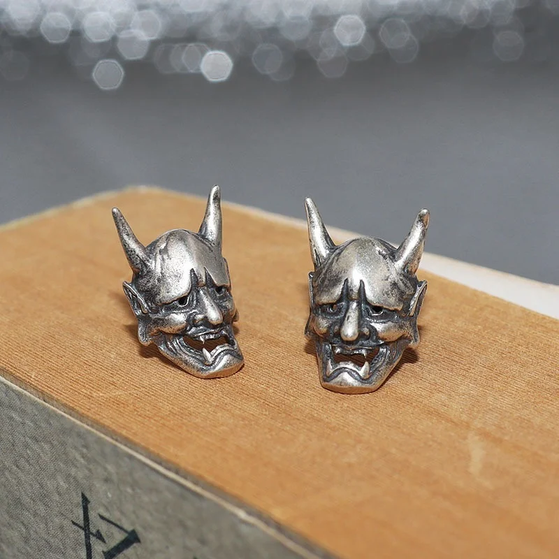 Мужские серьги в стиле ретро, длинные серьги в виде маски демона, ч...