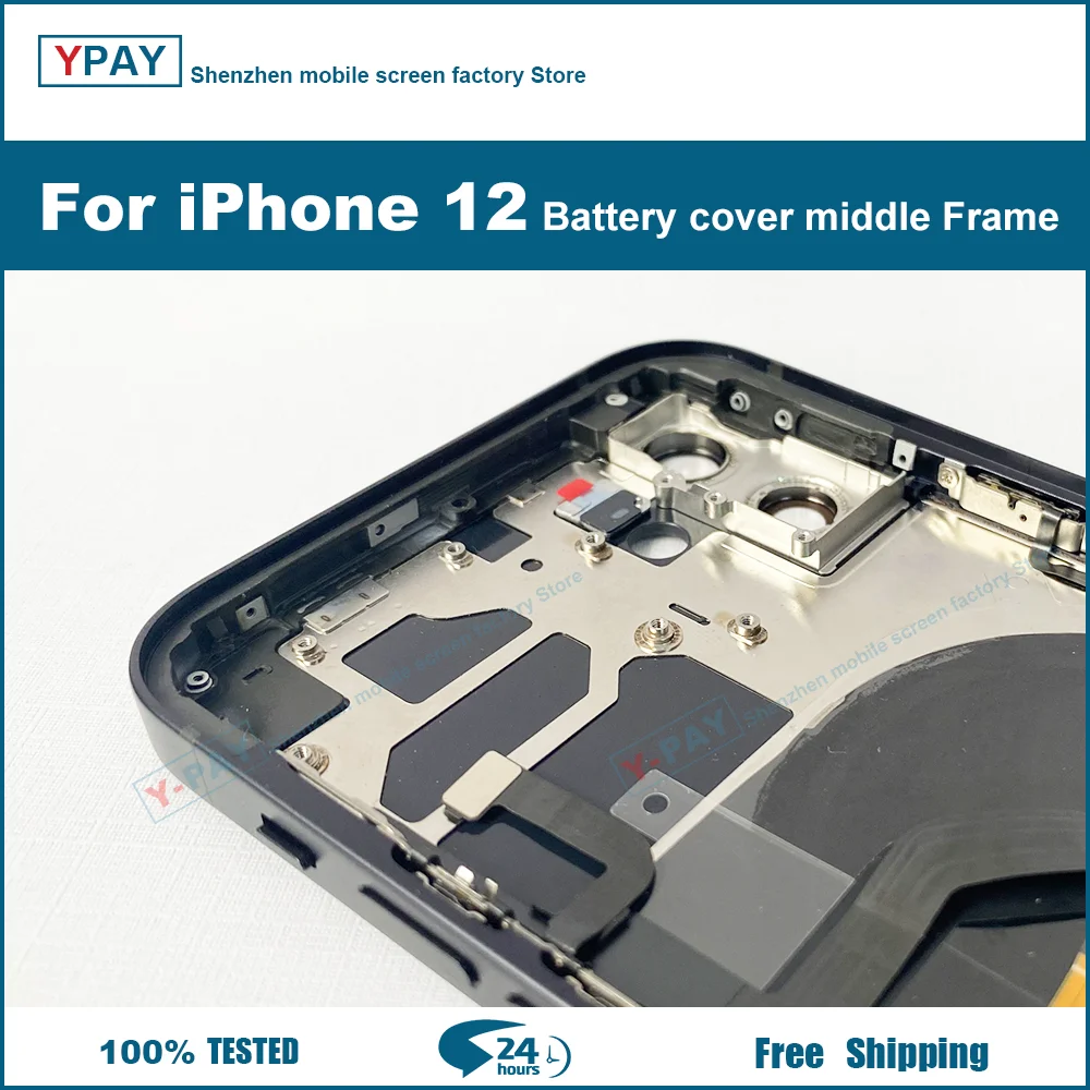 Задняя крышка аккумулятора для iPhone 12 + рамка среднего корпуса + лоток для SIM + боковые детали для ключей корпус с гибким кабелем