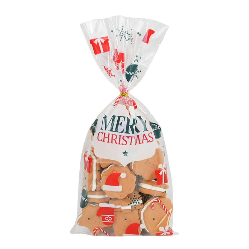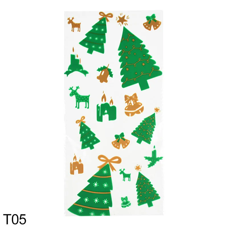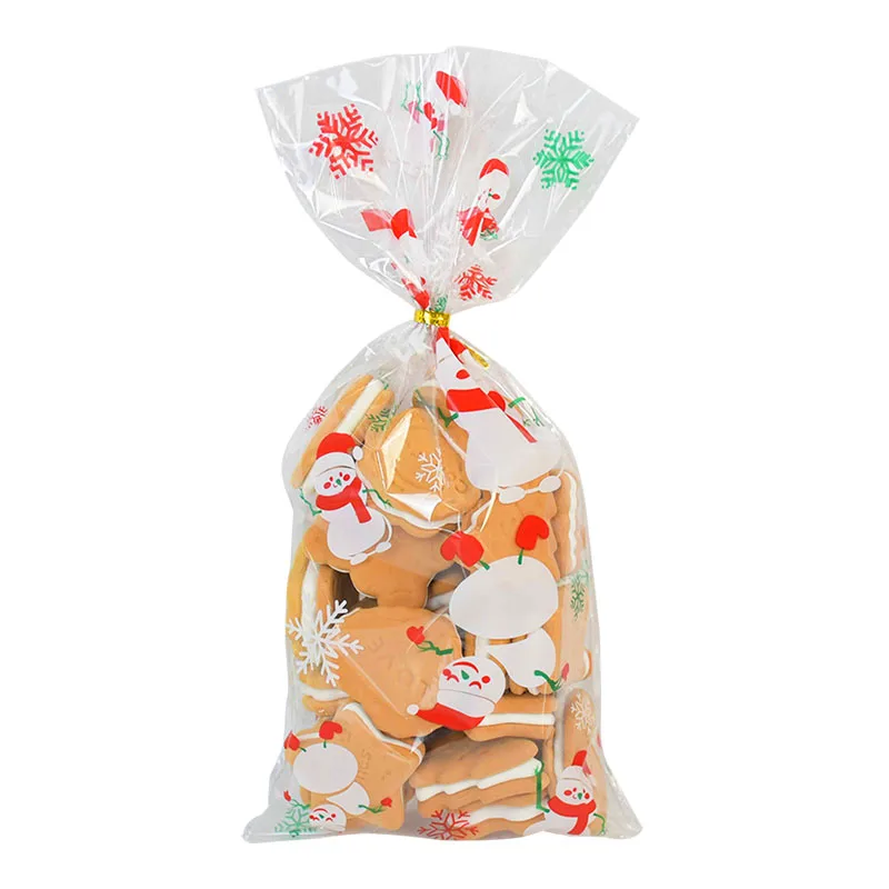 200 штук Рождественские подарочные сумки 27 см мультяшная Рождественская елка Санта Клаус прозрачная сумка для подарка на Рождество конфеты для печенья, закусок упаковка
