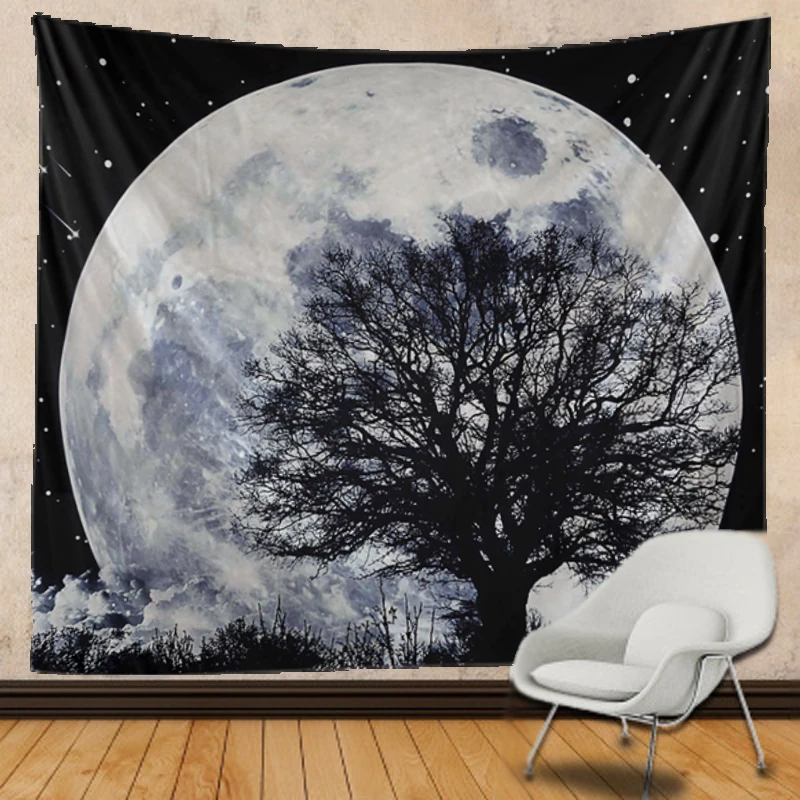 Черно-белая луна Фон Ткань Гобелен Мандала гобелен стены украшения ...