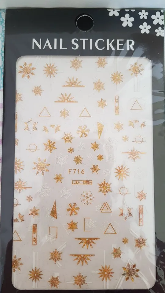 Рождественские 3D наклейки для дизайна ногтей, блестящие золотые и белые красочные блестящие геометрические снежинки, зимние слайдеры, фольга для ногтей