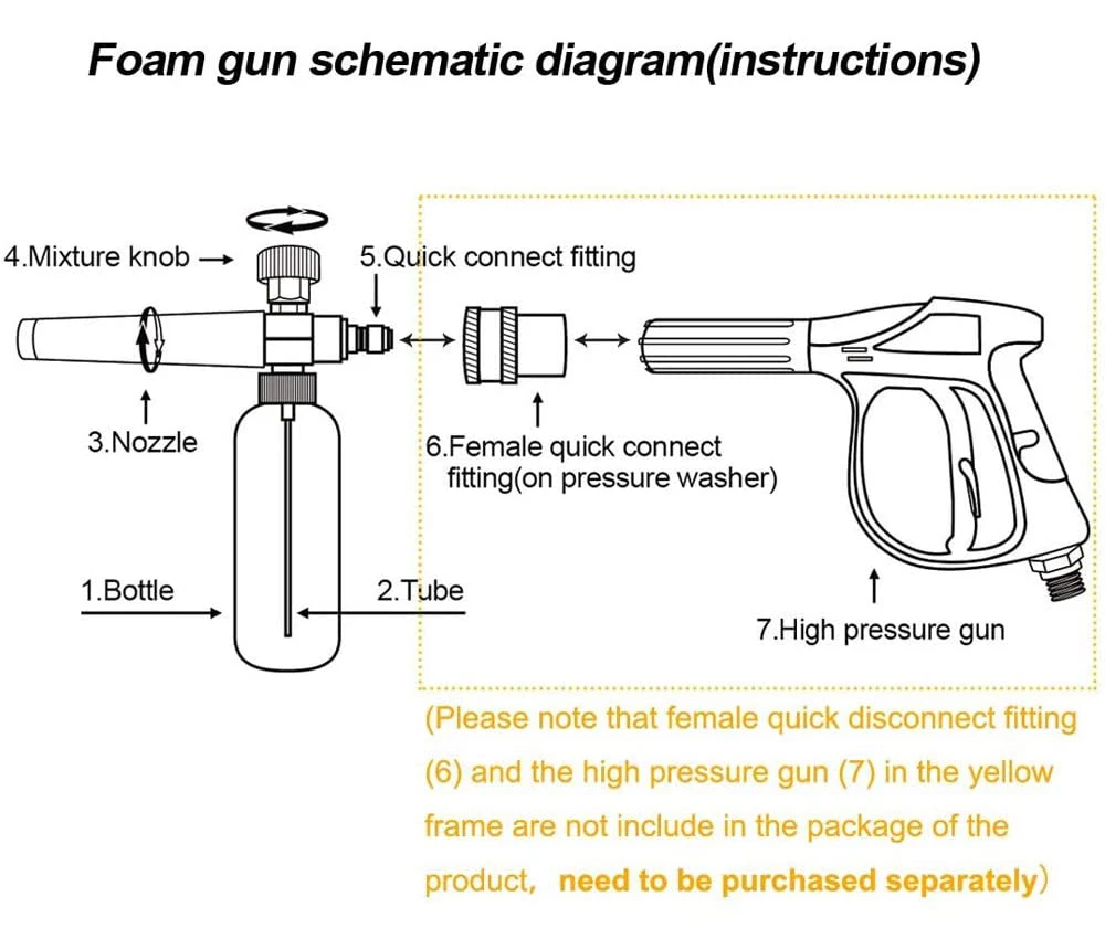 Работает с воздушным компрессором для очистки раствора в щели, которые вы не можете достичь вручную* Обратите внимание, что фитинг для быстрого отключения (6) и пистолет высокого давления (7) в желтой раме не включены в посылка продукта, необходимо приобретать отдельно.