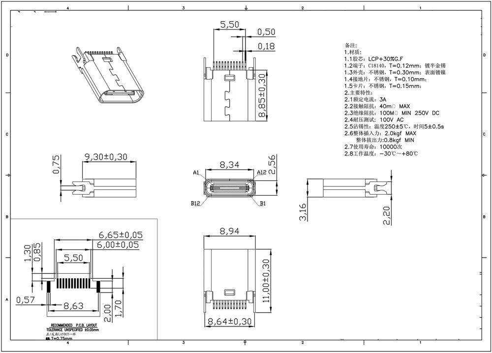 Универсальный USB 3,1 Тип C 24P Женский шина 0,8 длина 9,3 шина Женский 24P полная функция