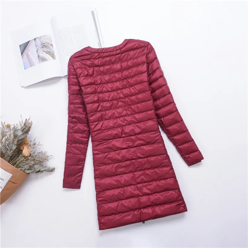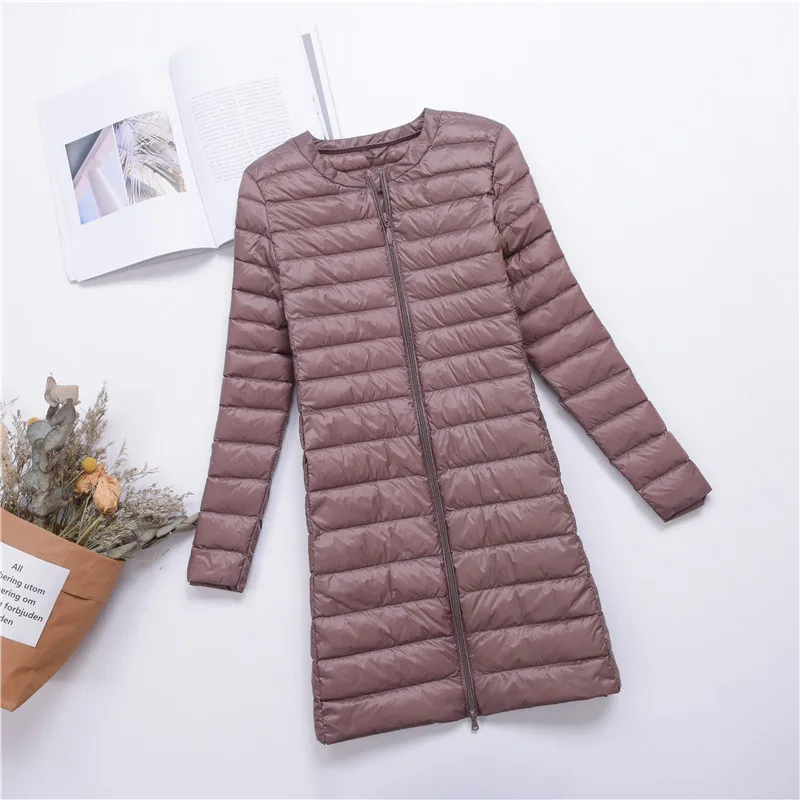 Женский тонкий пуховик средней длины, зимняя легкая тонкая белая куртка, модель 016 большого размера, 2021