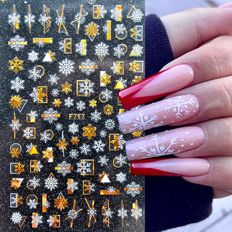 Рождественские 3D наклейки для дизайна ногтей, блестящие золотые белые красочные блестящие геометрические снежинки, зимние слайдеры, фольга для ногтей, инструмент