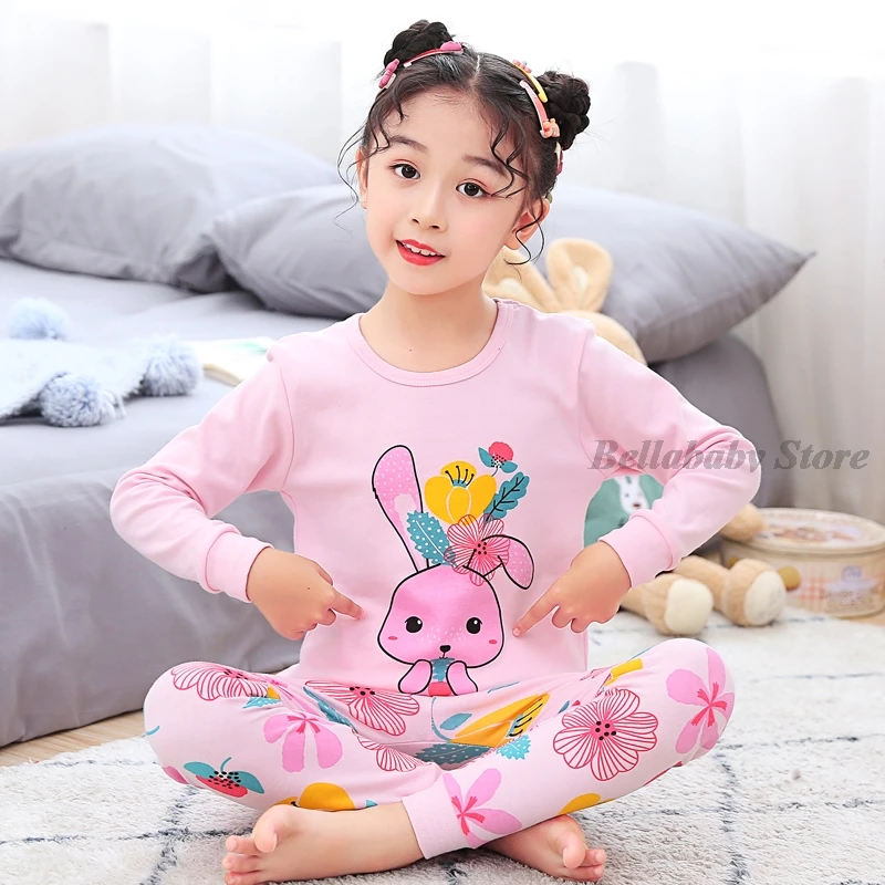 Пижамный комплект для девочек 2, 4, 8, 10, 12, 14 лет, осенне-зимняя мягкая теплая детская пижама для девочек с милым мультяшным розовым рисунком рыбки