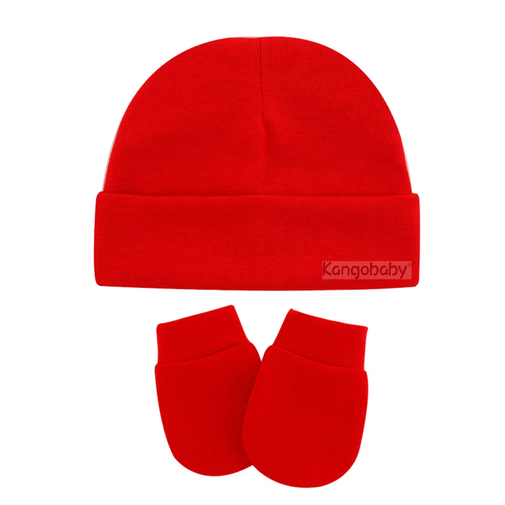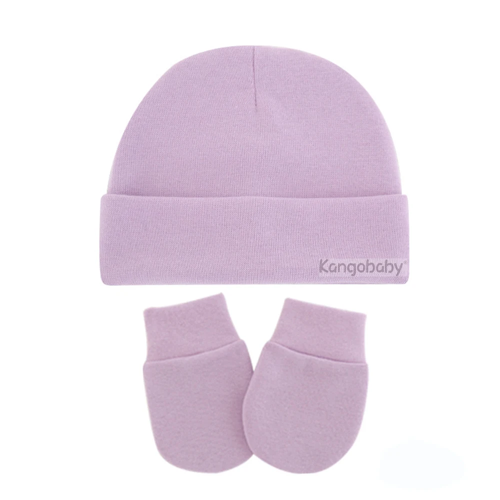 Kangobaby # My Soft Life # осенне-зимняя шапка для новорожденных, комплект перчаток против царапин, однотонный пуловер, шапка для младенцев
