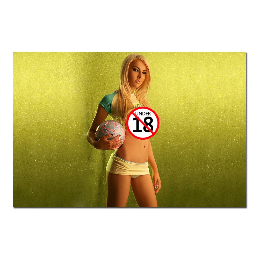 Горячая Распродажа плакат красоты блонд футбольная девушка холст ткань печать настенные картины для декора гостиной