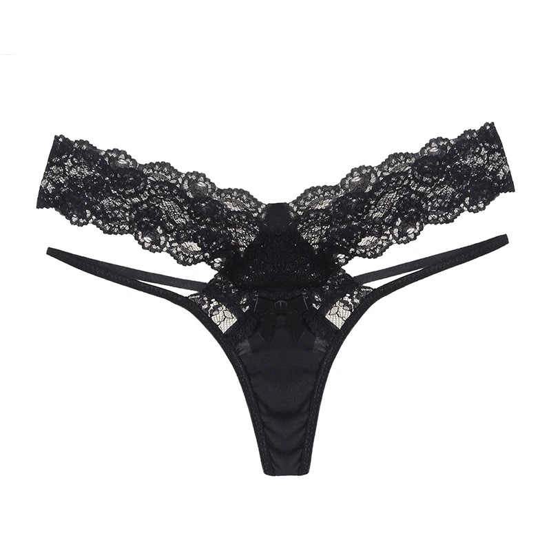 Женские сексуальные кружевные трусики, нижнее белье с Т-образным вырезом, мягкое удобное нижнее белье с галстуком-бабочкой, прозрачное нижнее белье с низкой талией, открытые стринги