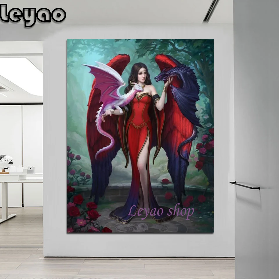 Полный квадрат/круглый 5D DIY Алмазная роспись дракона леди Алмазная Вышивка Узор готическое Искусство Набор крестиков мозаика домашний декор
