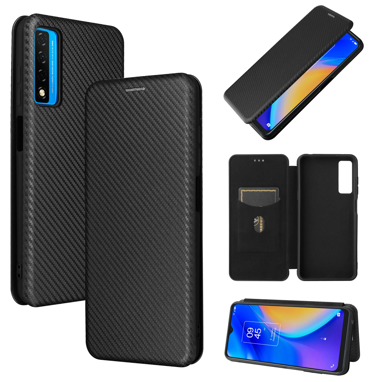 Чехол для TCL 20L Plus 6,67 дюйма, кожаный чехол-книжка из углеродн...