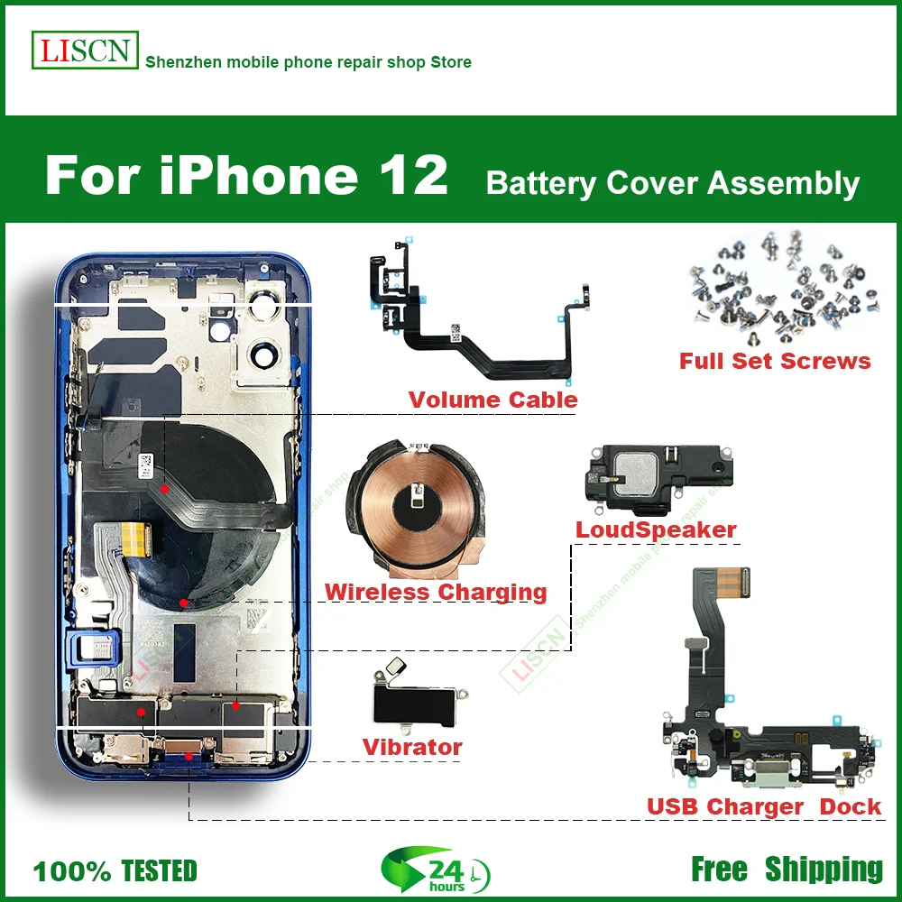 Задняя крышка батарейного отсека для IPhone 12, средняя рамка Шасси, лоток для SIM-карты, компоненты боковых ключей, мягкий чехол для кабеля для установки + подарки