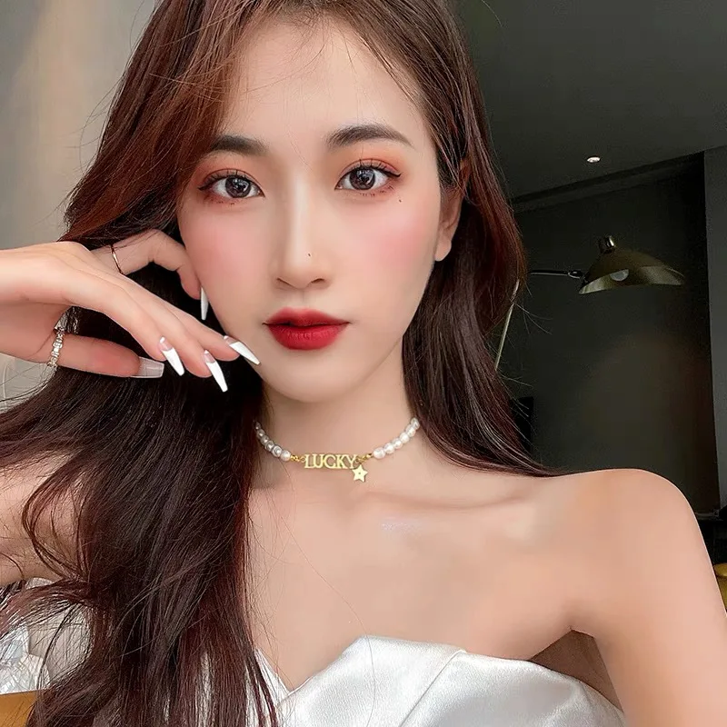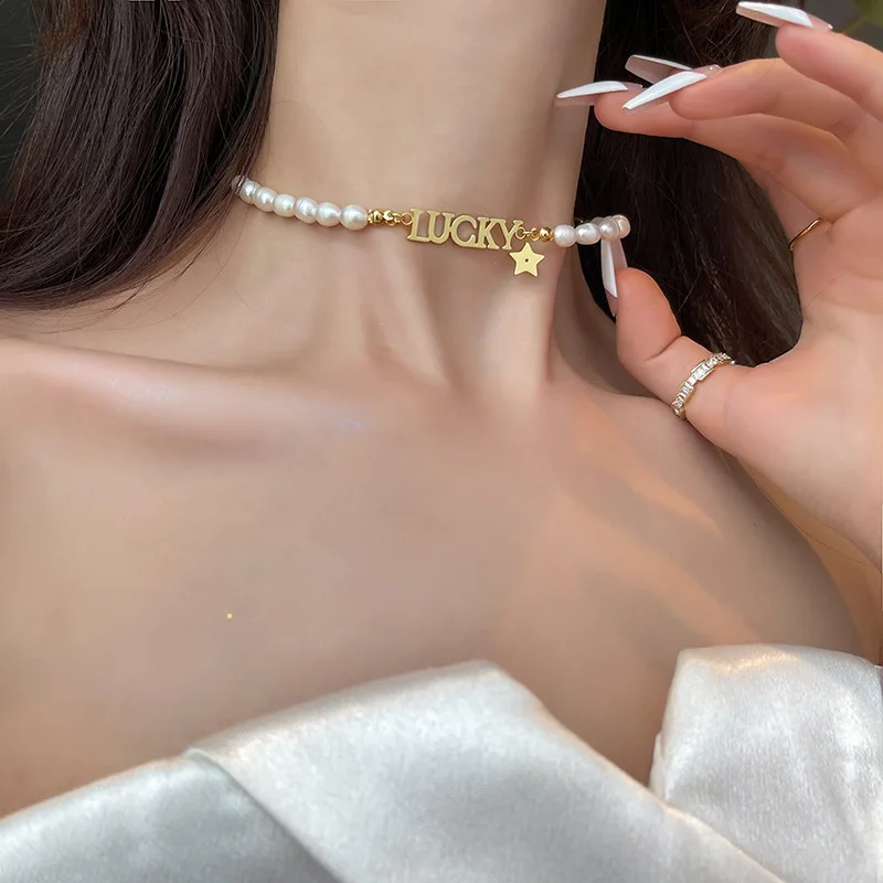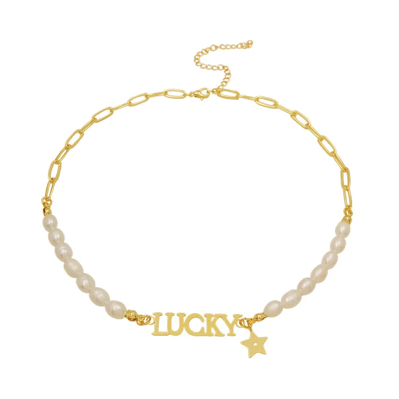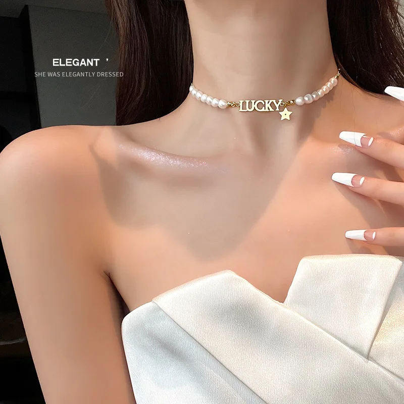 Роскошная цепочка до ключицы в стиле барокко с жемчугом и надписью ...